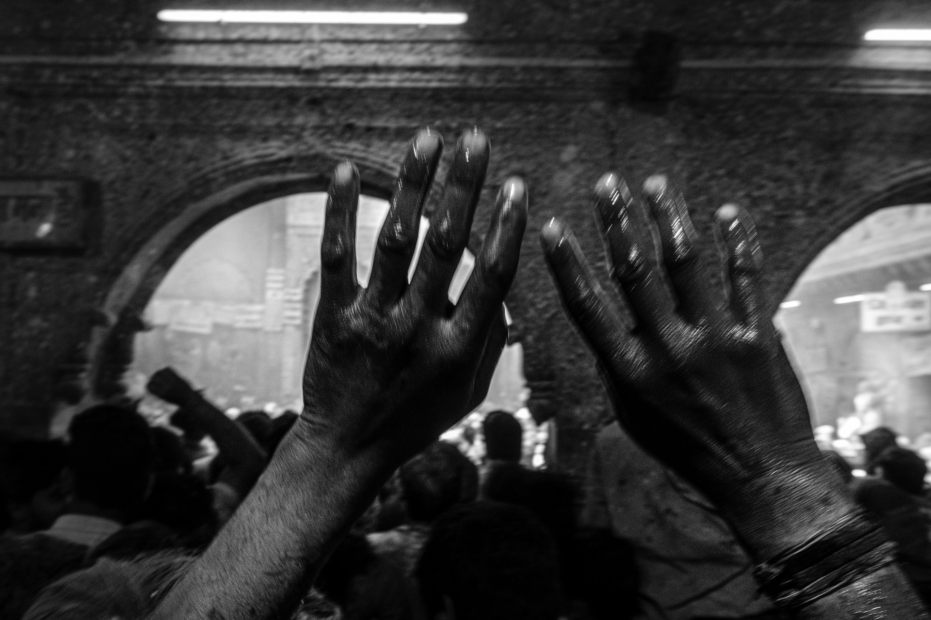 Lasciando fuori cose superflue come un paio di semplici ciabatte, comunque sostituibili, ci si appresta ad incontrare nel tempio gli affetti più profondi che ognuno ha portato fin là. Mano a mano che ci si addentra, si sente crescere la parte spirituale e l’astrarsi di quella umana: una folla fervente muove anche chi pensava di restare fermo. I bambini vengono portati sulle spalle a fatica dai padri che, a un passo dal cedere alla stanchezza, li passano di mano in mano sopra un tappeto umano, con la speranza di tenerli in alto e farli arrivare all’uscita incolumi, non travolti dalla folla.